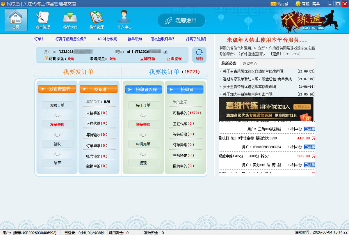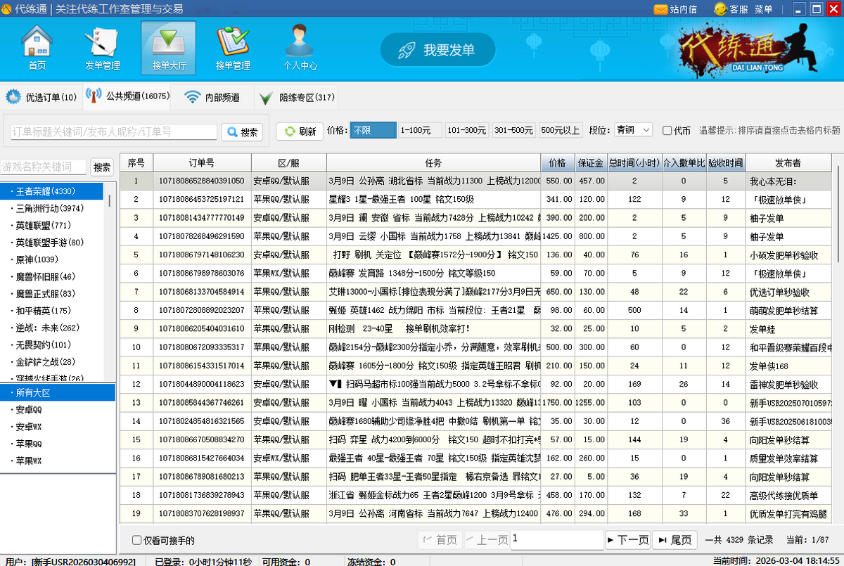 订单异常,订单验收。专业客服解决纠纷订单。统一结算,一步到位。专业代练从代练通做起!
